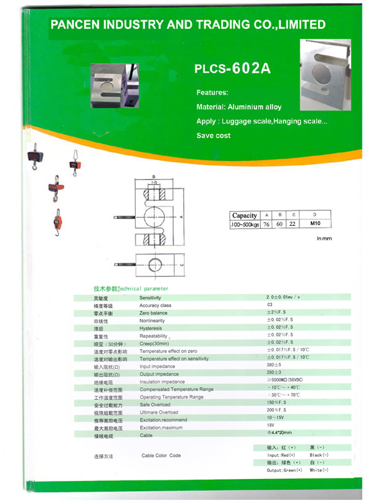 S type Alumimium Alloy Load Cell for Hanging Scales